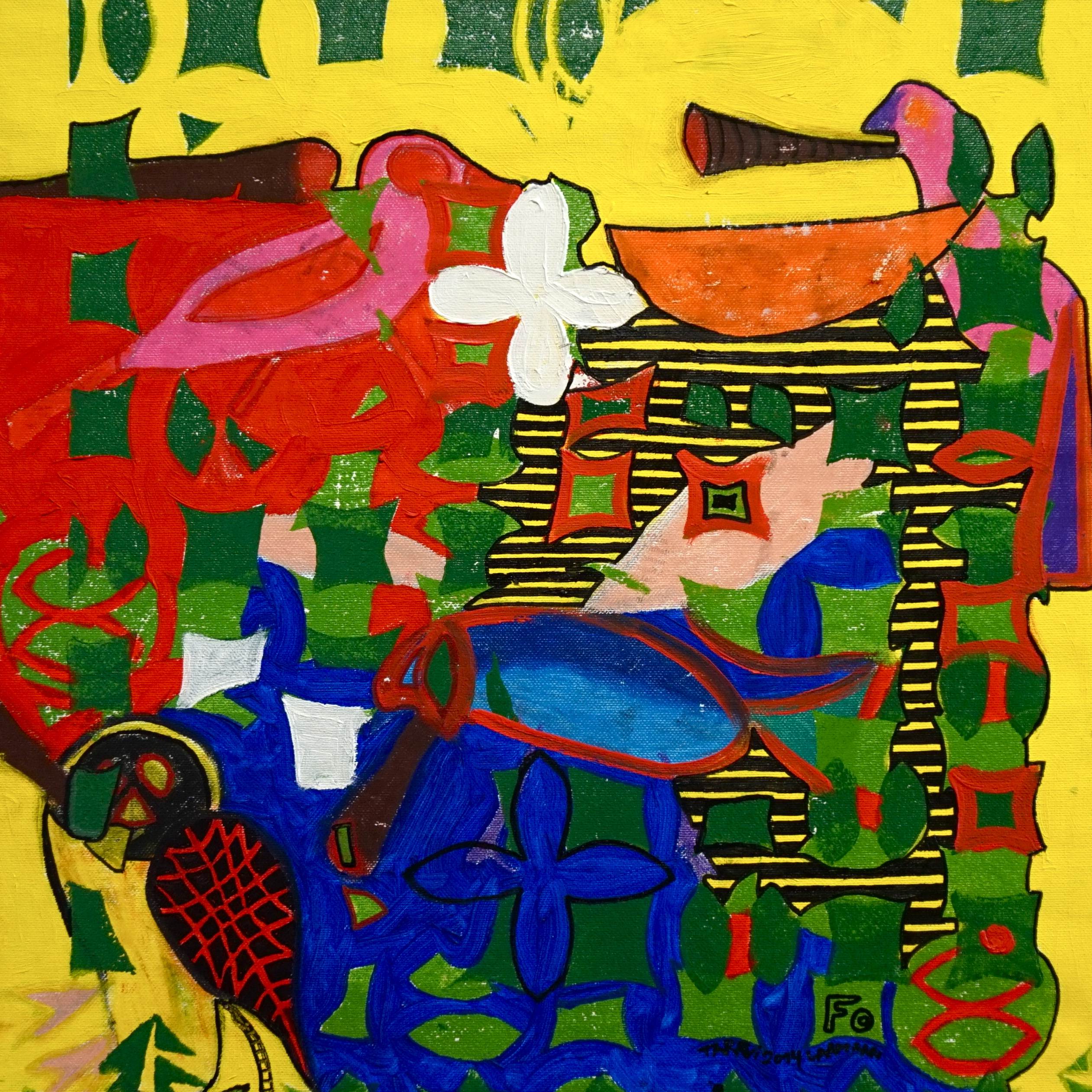 F0 (Tarrvi Laamann, 2014, woodcutprint, oil, canvas, 44x44cm)
