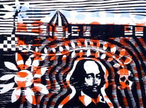Shakespeare @ Treasure Beach (2012, woodcutprint, 40x50cm)