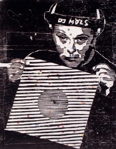 2011- DJ Möls (woodcutprint, 40x30cm)